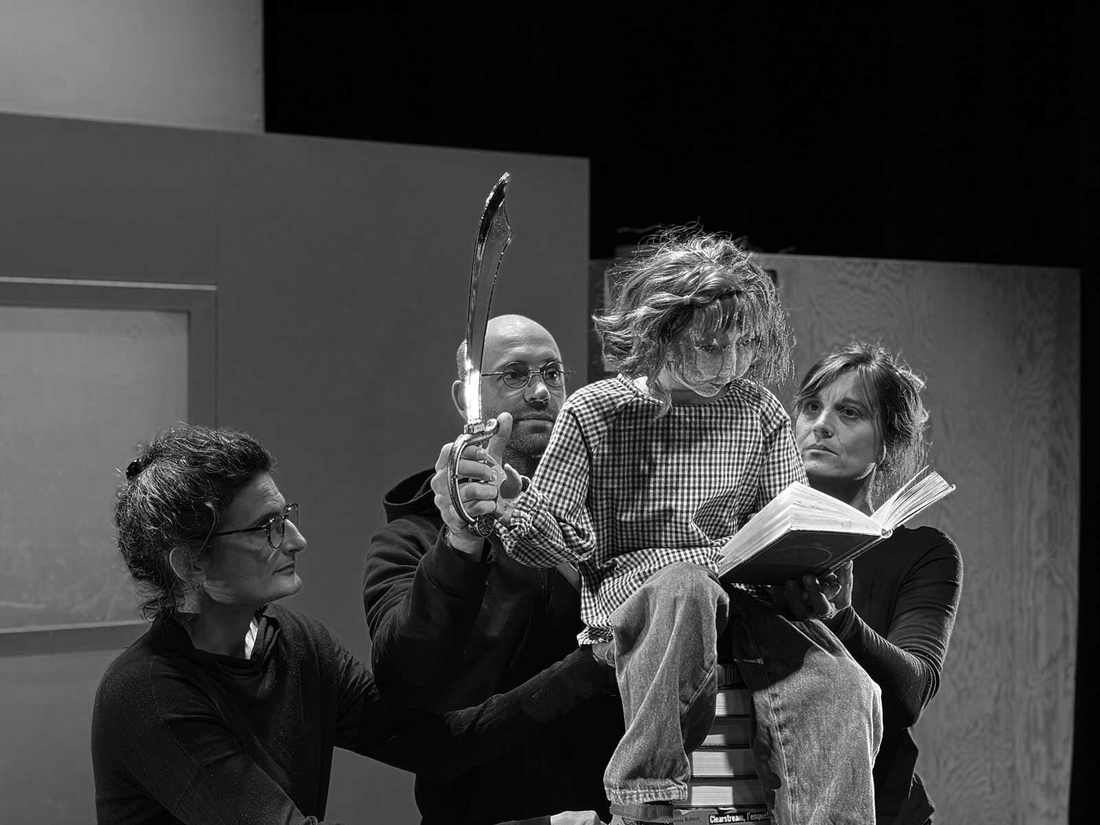 Ce spectacle de théâtre et marionnettes, avec une bibliothèque pour décor, met en scène le silence et la résistance dans une dystopie proche du réel. Les trois manipulateur·ices s’adressant directement au public, interprètent aussi des bibliothécaires et sont au service d’une écriture retenue et très rythmée qui tend vers le réalisme poétique.