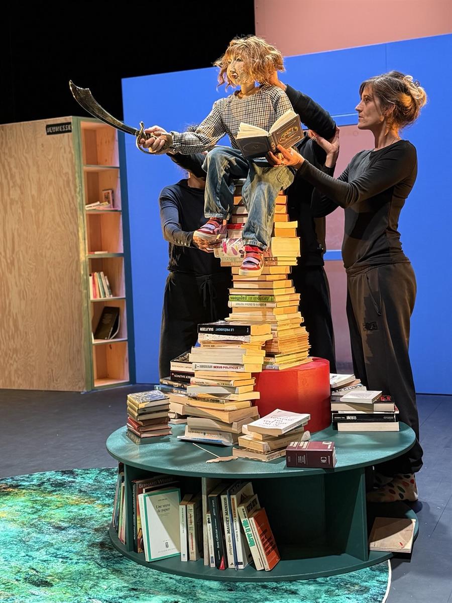 Ce spectacle de théâtre et marionnettes, avec une bibliothèque pour décor, met en scène le silence et la résistance dans une dystopie proche du réel.