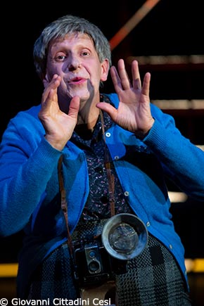 Mère Hollunder est née dans une pièce de théâtre. C’est l’un des personnages de Liliom que le hongrois Ferenc Molnár a écrit en 1909. Jean Bellorini, mettant en scène Liliom en 2013, m’a proposé d’y interpréter plusieurs petits rôles, dont le secrétaire de Dieu, ce qui n’est quand même pas rien, quand on y réfléchit… et cette Mère Hollunder. Lauriane Scimemi a imaginé pour le personnage une silhouette de grosse dame. Joyeuses séances d’essayage de costume et début de l’aventure… Mère Hollunder ne fait que quelques passages dans Liliom, toujours à toutes jambes, toujours ronchonnant et armée de son appareil-photo, c’est son métier. C’est sur la chaise où je m’asseyais en coulisse, attendant mes entrées, parfois longtemps, mais aussi croisant le regard surpris des techniciens dans les théâtres qui accueillaient le spectacle, que j’ai commencé à m’attacher à elle et à lui inventer une vie. Molnár ne lui a pas donné de prénom. J’ai continué à l’appeler « Mère ». Elle fait partie de ces anonymes, ces discrets, ces sans-grades, qui n’ont pas d’histoire, ou plutôt, dont on n’imagine même pas qu’ils pourraient avoir une histoire.