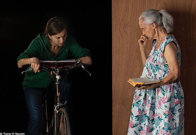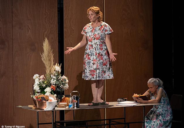 Chacun se retrouve comme il peut dans sa vie et ses croyances en essayant de se divertir de l’épouvante. S’emparant du texte de Péguy, Frédéric Fisbach, avec l’appui de la dramaturge Charlotte Farcet, se jette dans l’écriture et oppose Le Mystère de la charité de Jeanne d’Arc à la parole de sa mère, une femme de quatre-vingt-trois ans, née au Caire, arrivée en France à dix-sept ans, devenue française à vingt-huit. Une collision frontale d’une Jeannette à une autre.