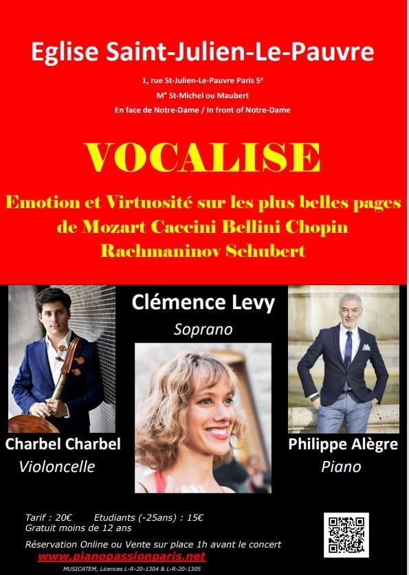 Au programme : Mozart : Alleluia, Reine de la nuit ; Caccini : Ave Maria ; Rachmaninov : Vocalise ; Monti : Czardas ; Chopin : Valse  ; Massenet : Elégie ; Saint-Saëns : Mon cœur s’ouvre à ta voix ; Bellini : La somnambule