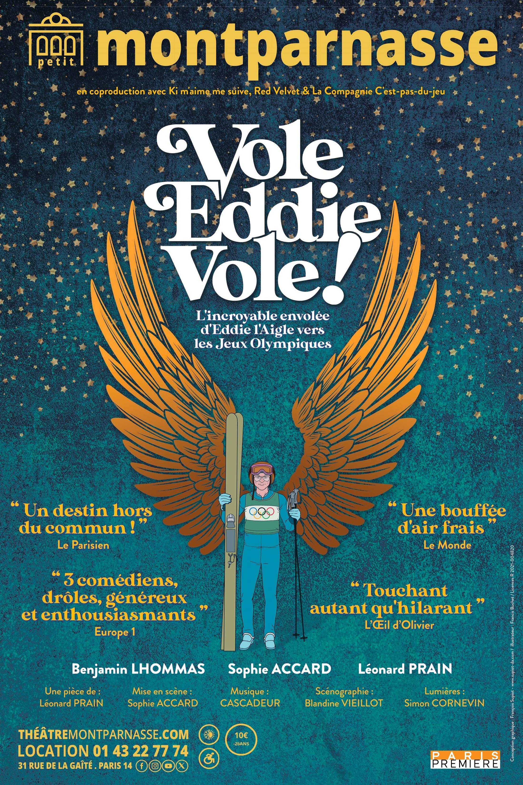 Après plus de cent représentations à travers toute la France, Vole Eddie, vole ! ou l'incroyable histoire vraie d'Eddie Edwards arrive enfin à Paris ! Et si croire en sa bonne étoile était la meilleure façon d'accomplir ses rêves