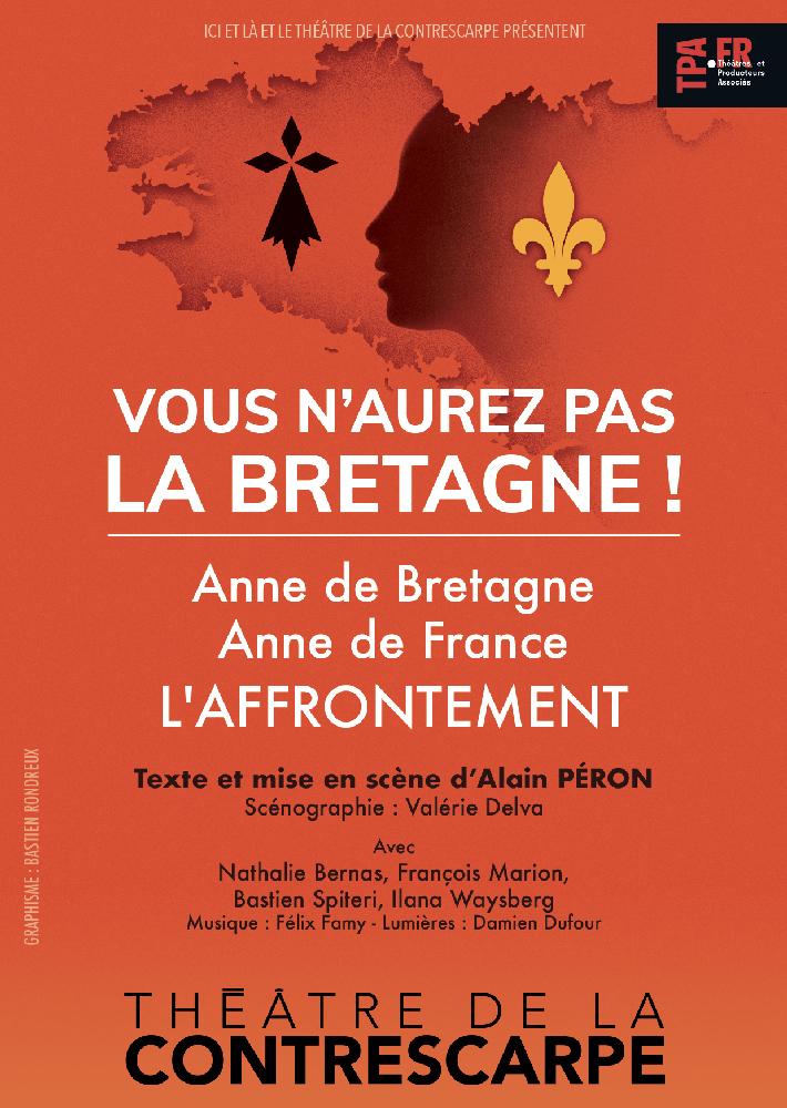 Très agréable pièce jouée avec ardeur,$ qui a l'avantage de nous mettre dans le vif d'une histoire de France et de Bretagne de près de 500 ans et de nous faire vivre au présent des personnages dans leur contexte historique et sentimental. C'est très humain et en même temps très actuel en écho avec le contexte politique mondial actuel.