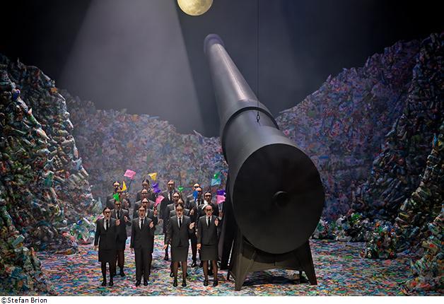 Surprise chez les Sélénites - les habitants de la Lune - lorsque trois terriens s’invitent chez eux ! Laurent Pelly met en scène les enfants de la Maîtrise populaire dans cet opéra-féerie délirant inspiré de Jules Verne. Spectacle en français, surtitré en français et anglais.