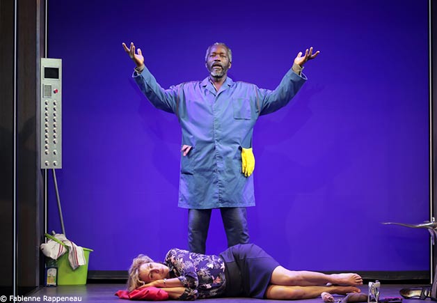Vendredi soir, Juliette, la femme du Patron, angoissée, énergique, drôle, hystérique, abandonnée, complètement citadine, et l'homme de ménage Moctawamba, africain mutique, lunaire, poète, secret et père de famille, se retrouvent coincés au deuxième sous-sol de l'entreprise.