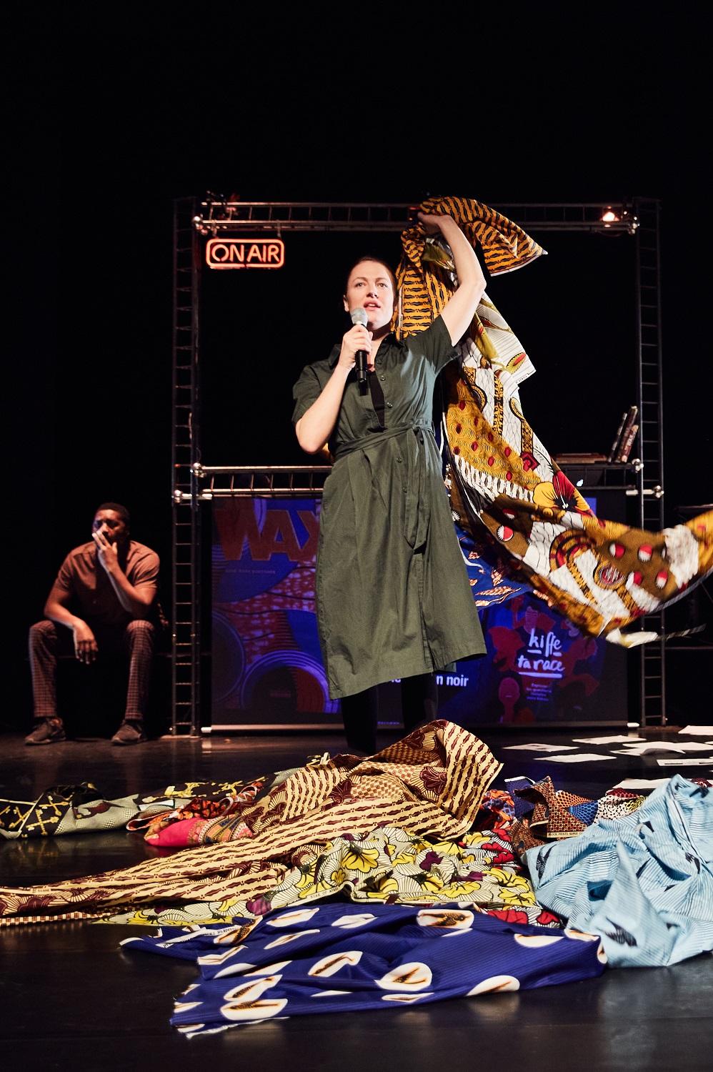 Dans Wax Mood, Hervé Sika questionne notre identité culturelle et ses mouvements perpétuels à travers la métaphore du wax, ce tissu qui défie toute possibilité d’être enfermé dans une identité fixe, tant il est repris et copié. À partir de 12 ans.