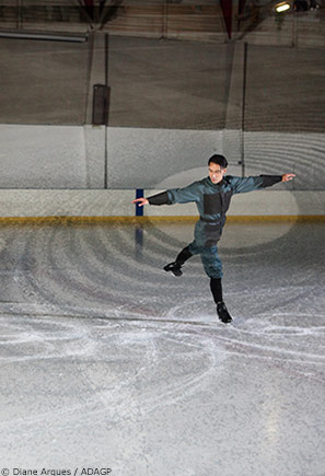 Tel un archéologue du mouvement, il ré-active ces « figures imposées » très techniques et précises qui consistaient à graver trois fois de suite dans la glace l’exacte même forme circulaire. Au fil de sa performance, des tableaux prennent vie : des pendules tournent, des objets glissent, des mécanismes se déclenchent. Une expérience totale au cœur du mouvement.