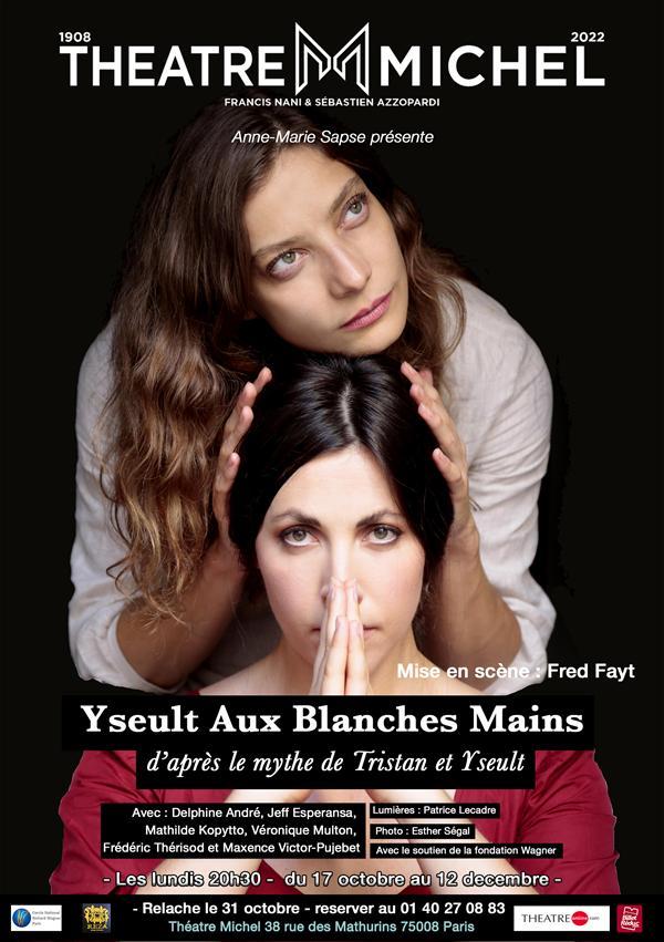 Dans cette pièce, vous pourrez voir comment Yseult aux blanches mains vit l'amour de son mari pour une autre femme. Pour survivre, elle imagine une alter ego, une femme aimée et heureuse. Finalement, elle se venge et sa vengeance déclenchera le mythe.