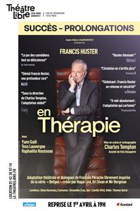 Francis Huster revient au théâtre dans un rôle bouleversant – celui d’un thérapeute au bord de l’abîme. Adaptée de la série culte BeTipul, En thérapie explore la face cachée de celui qui écoute : le psy.