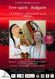 Shagan interprète le folklore traditionnel bulgare, le chant de gorge et le chant diphonique, accompagnés de la cithare chinoise guzheng, de la guimbarde, des percussions et de flûtes.