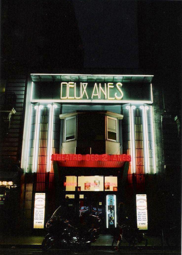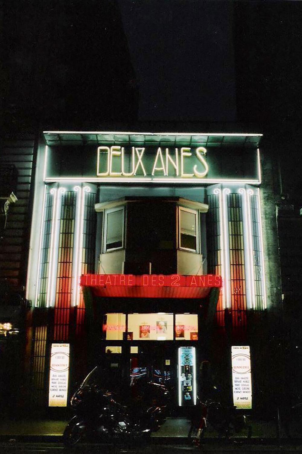 Après avoir connu des fortunes diverses sous plusieurs appellations (La Truie qui file, l’Araignée, le Porc-Épic, Les Truands…), l’établissement situé au 100 boulevard de Clichy devient en 1917 le Théâtre des 2 Ânes à l’initiative de Roger Ferréol et André Dahl déjà propriétaires du Dix Heures situé sur le même boulevard. Le nom proviendrait de la difficulté à rebaptiser un lieu totalement rénové (« Pour ne rien trouver, faut-il que nous soyons ânes ! »).