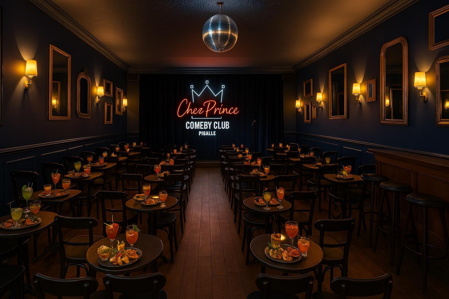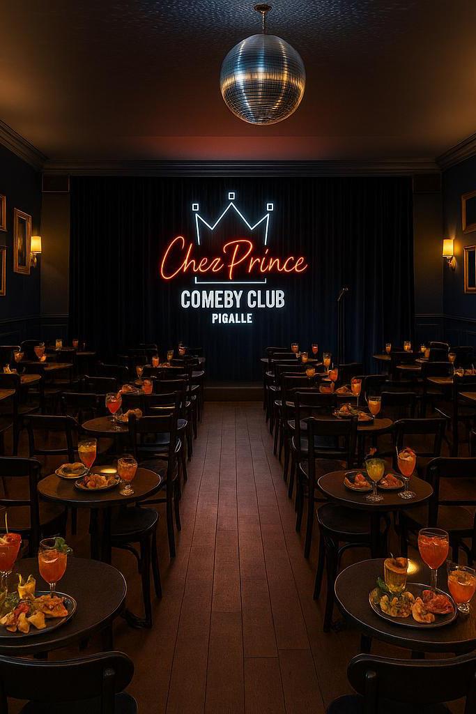Le nouveau Chez Prince Comedy Club du Pigalle a été conçu pour offrir une expérience spectateur incomparable. Une salle plus grande, pensée dans les moindres détails pour que chaque rire, chaque punchline et chaque interaction résonne parfaitement. Confort, cocktails et cuisine, décoration, tout a été imaginé pour le public. Un lieu moderne et chaleureux où l’on vit le stand-up de la meilleure façon possible.