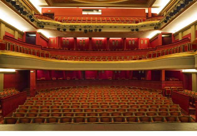Un ébranlement de la tradition. Voici comment, en 1913, un parisien aurait pu définir la naissance de ce curieux bâtiment, fruit de l’imagination des Frère Perret, qui abrite aujourd’hui le Théâtre, la Comédie et le Studio des Champs-Élysées. Première structure en béton armé dans une salle de spectacle, imposante façade de marbre blanc aux lignes épurées : l’édifice, véritable incarnation de la Modernité, pare les bords de Seine d’un style Art Déco. Il faut dire que les plus grands ont concouru à en faire un lieu exceptionnel : Lalique, Vuillard, Bourdelle ou encore Roussel ont marqué l’endroit de leur génie.