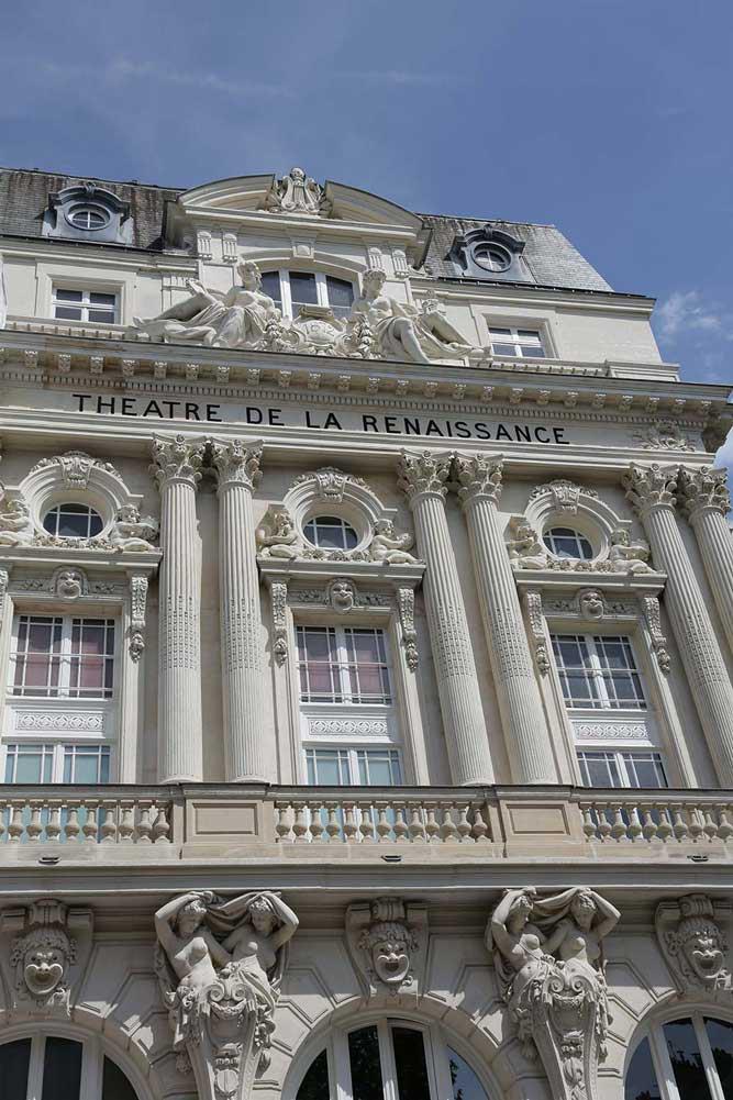 Ce n'est qu'après la guerre, en 1872, que l'architecte Charles Delalande, assistant de Charles Garnier, entame la construction d'une nouvelle salle, sur les décombres d'un restaurant incendié par les communards. Parfait exemple de théâtre à l'italienne, architecturalement très proche de l’Opéra, le théâtre de la Renaissance, s'intègre parfaitement à la nouvelle géographie théâtrale parisienne imposée par les grands travaux hausmanniens.